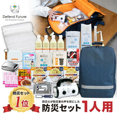 防災セットには3日分の食べ物や飲み水、生活に必要なラジオやエアーマットがそろっており避難所生活も安心です。